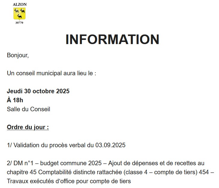 Conseil Municipal Le prochain Conseil Municipal se tiendra le jeudi 30 octobre 2025, à 18h00, salle du Conseil. Jacques Oerlemans2025-10-28T13:58:51+01:00octobre 28th, 2025|