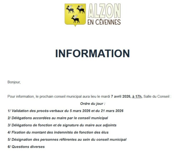 Conseil Municipal Le prochain Conseil Municipal se tiendra le mardi 07 avril 2026, à 17h00, salle du Conseil. Jacques Oerlemans2026-04-04T11:47:54+02:00avril 4th, 2026|